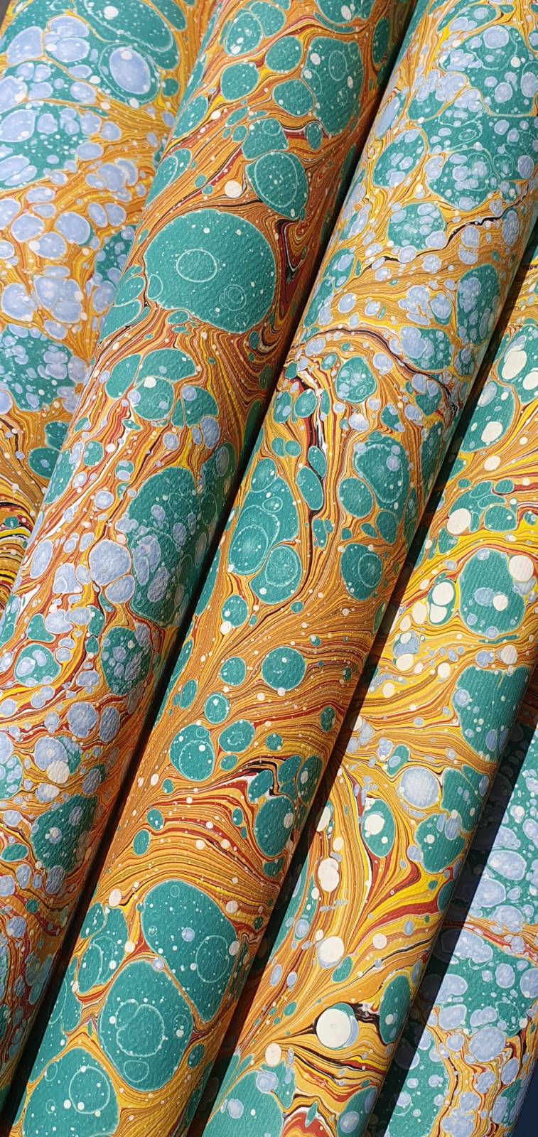 Dla tych, którzy kochają piękne rzeczy, a zwłaszcza książki. Możesz tu kupić ręcznie robiony papier w rozmiarze A3. Możesz też wybrać własną paletę kolorów. Poniżej przedstawiam papier, który trafił na okładki lub wyklejki książek Palantiri.